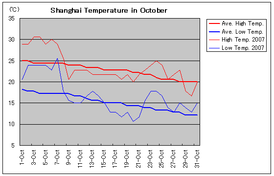 | 月日 | 平均気温 最高 / 最低 | 2007年10月 最高 / 最低 | 月日 | 平均気温 最高 / 最低 | 2007年10月 最高 / 最低 |