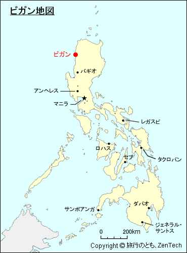 フィリピン北部のルソン島北部の南シナ海沿岸に位置するビガンの気候は、熱帯性気候で明確な雨季と乾季がある熱帯サバナ気候(ケッペン気候区分:Aw)に属しています。乾季は 11月に始まり 4月に終わり、そして5月から10月までは雨季となります。年間平均降水量は 2,506ミリメートル(98.66インチ)で、記録されている最も多い降雨量は 6,933ミリメートル(272.95インチ)です。ビガンの年間平均気温は 27.4℃、最高気温の平均は 30.9℃、最低気温の平均は 21.1℃です。ビガンには毎年平均 7~10個の台風が襲来します。平均相対湿度は 81%です。