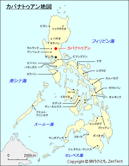 フィリピンにおけるカバナトゥアンの場所が判る地図(Map of Cabanatuan, Nueva Ecija Province , Central Luzon Region, Luzon Island, Philippines)