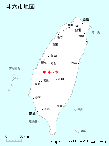 台湾における斗六市の場所が判る地図(Map of Douliu City, Yunlin County, Taiwan)