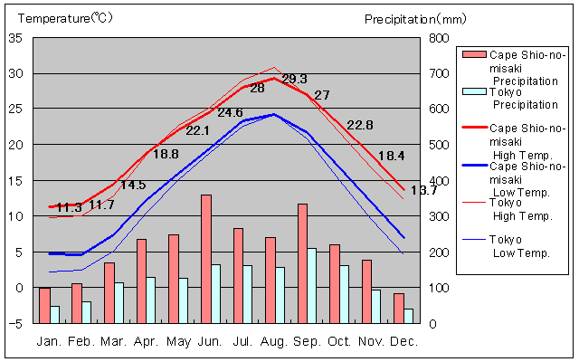 | Average High Temperature (°C) | 11.3 | 11.7 | 14.5 | 18.8 | 22.1 | 24.6 | 28 | 29.3 | 27 | 22.8 | 18.4 | 13.7 |