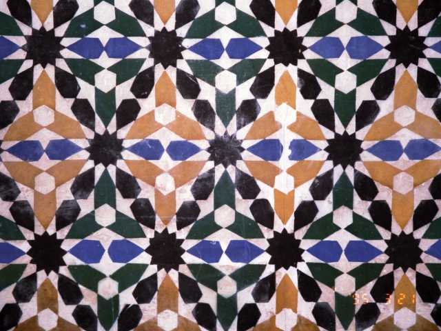 アラベスク(Arabesque)は、モスクの壁面装飾に通常見られるイスラム美術の様式です。幾何学的文様を反復して作られます。幾何学的文様の選択と整形・配列の方法は、イスラム的世界観に基づいています。イスラム教徒にとって、これらの文様は可視的物質世界を超えて広がる無限のパターンを構成しています。アラベスク文様は、無限の唯一神アラーの創造のありのままを象徴する姿を象徴しているといわれています。