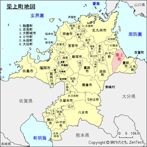 築上町地図(Map of Chikujo Town, Fukuoka Prefecture, Japan)