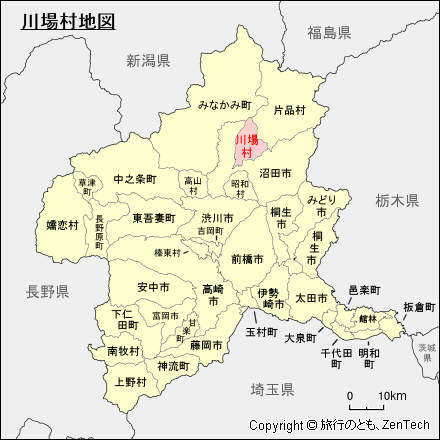 川場村(かわばむら)は、関東地方・群馬県の北毛地域(利根地域)にある村(利根郡)です。面積は 85.25平方キロメートル、群馬県内では 22番目に面積の大きな自治体です。人口は 3,511人(2020年5月1日)、群馬県では 32番目に人口の多い街です。川場村の周辺は、沼田市、利根郡みなかみ町、片品村が位置しています。