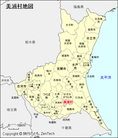 茨城県における美浦村の位置が判る地図