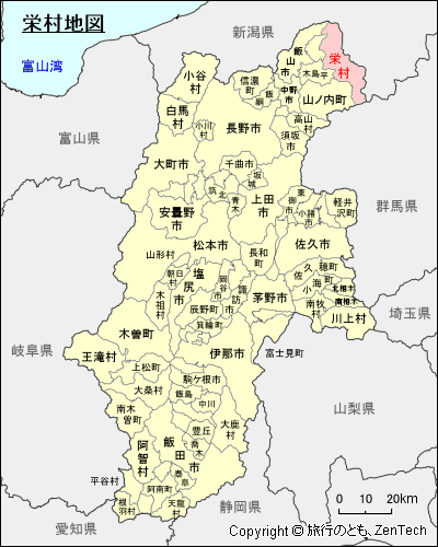 栄村の周辺は、飯山市、下高井郡山ノ内町、野沢温泉村、木島平村、群馬県吾妻郡中之条町、新潟県十日町市、上越市、中魚沼郡津南町、南魚沼郡湯沢町が位置しています。