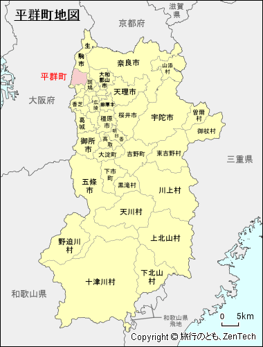 平群町(へぐりちょう)は、近畿地方・奈良県の北西部にある町(生駒郡)です。面積は 23.90平方キロメートル、奈良県内では 28番目に面積の大きな自治体です。人口は 18,162人(2020年6月1日推計)、奈良県では 19番目に人口の多い街です。
