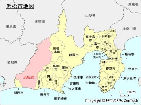 | 22133-3 | 西区 | 110,664人 | 114.40km2 | 舘山寺温泉、かんざんじロープウェイ、浜名湖パルパル、弁天島温泉、浜松市動物園 、はままつフラワーパーク 、浜名湖オルゴールミュージアム 、浜名湖ガーデンパーク、渚園(舞阪町弁天島) |