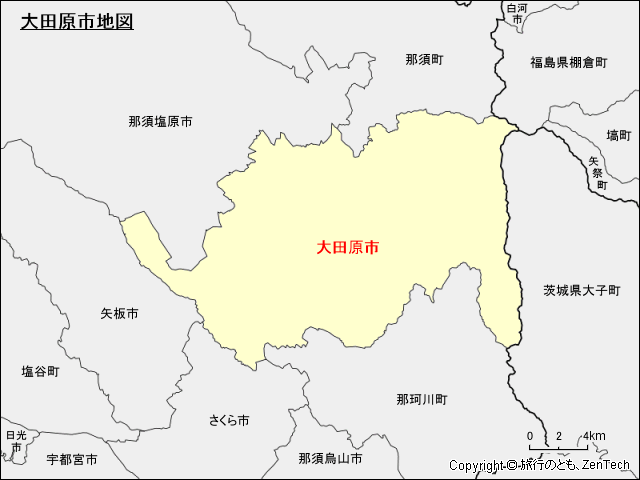 大田原市地図(Map of Ootawara City, Tochigi Prefecture, Japan)