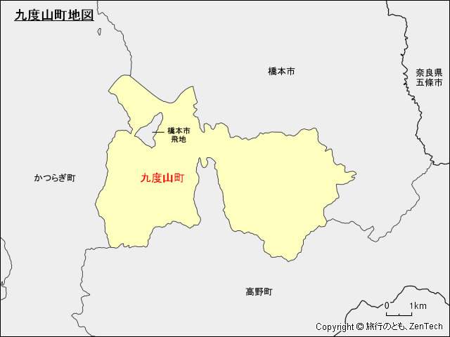 九度山町地図(Map of Kudoyama Town, Wakayama Prefecture, Japan)