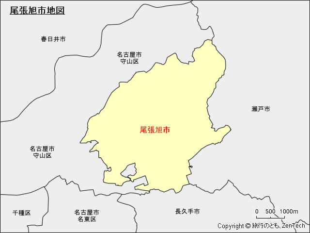 尾張旭市の周辺は、名古屋市、瀬戸市、長久手市が位置しています。