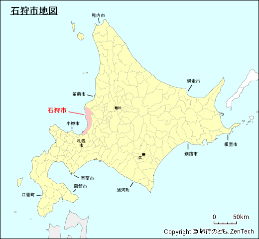 北海道における石狩市の位置が判る地図