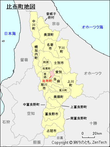 ”ä•z’¬’n}iMap of Pippu Town, Kamikawa Subprefecture, Hokkaido Prefecture, Japanj