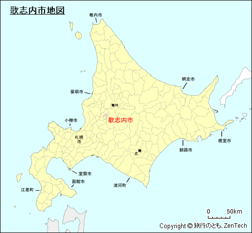 北海道における歌志内市の位置が判る地図