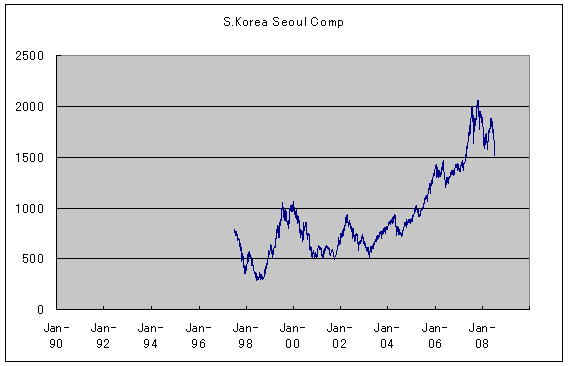 韓国株(韓国総合株価指数 = KOSPI)チャート(1997年以降)