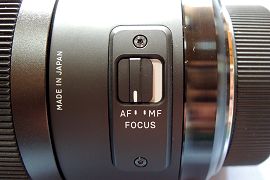 「MADE IN JAPAN」表記と AF/MF 切換スイッチ