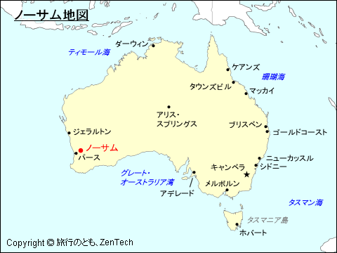 西オーストラリア州ノーサムと東京の気温および降水量グラフ