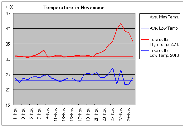 | 11月8日 | 30.8 / 22.9 | 33.0 / 24.7 | 5 | 11月23日 | 30.8 / 22.9 | 32.8 / 24.0 | 0 |