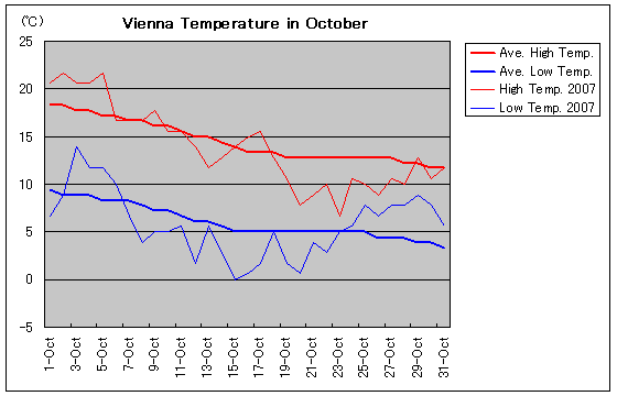 | 月日 | 平均値 最高気温 / 最低気温 | 2007年10月の気温 最高気温 / 最低気温 | 2007年10月の天気 |