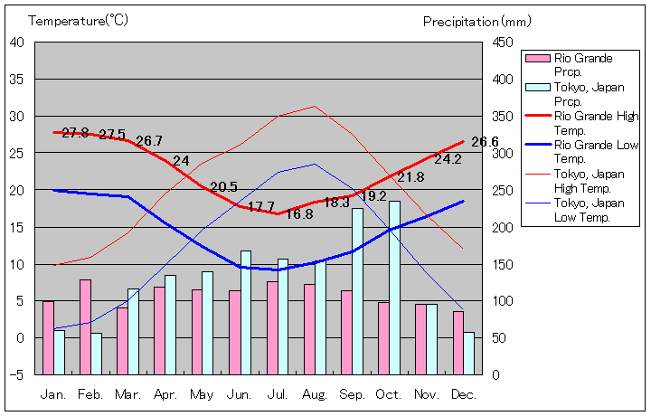 リオグランデ・ド・スル州リオグランデ月別気温(Temperature & Precipitation of Rio Grande, Rio Grande do Sul State, Brazil):リオグランデ・ド・スル州の都市、人口 191,900人(2022年現在)