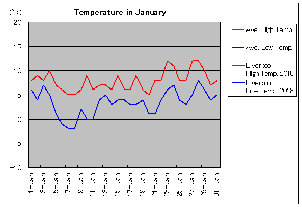 | 月日 | 平均気温 最高 / 最低 | 2018年1月 最高 / 最低 | 降水量 | 月日 | 平均気温 最高 / 最低 | 2018年1月 最高 / 最低 | 降水量 |