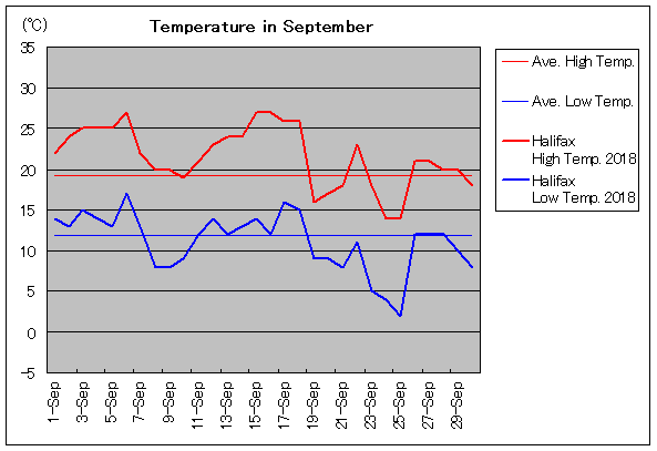 | 9月6日 | 19.3 / 11.8 | 27.0 / 17.0 | 11 | 9月21日 | 19.3 / 11.8 | 18.0 / 8.0 | 0 |