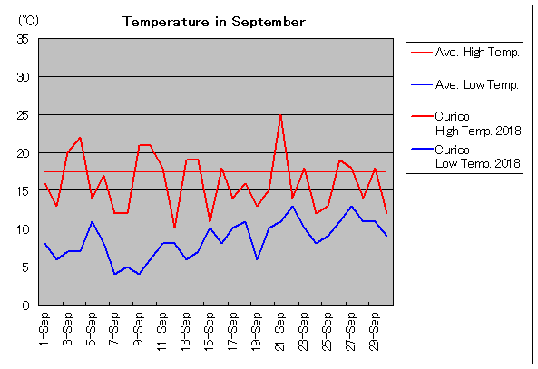 | 9月14日 | 17.5 / 6.3 | 19.0 / 7.0 | 0 | 9月29日 | 17.5 / 6.3 | 18.0 / 11.0 | 2 |