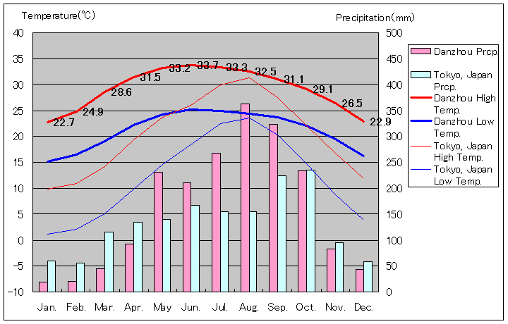 海南省 儋州月別気温(Temperature & Precipitation of Danzhou, Hainan, China)