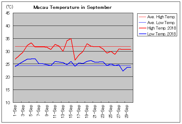 | 9月14日 | 31.9 / 24.3 | 34.1 / 24.7 | 3 | 9月29日 | 31.9 / 24.3 | 30.6 / 23.6 | 0 |