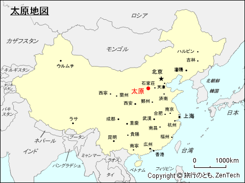 中国における太原の位置が判る地図