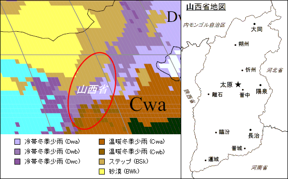 山西省気候区分地図(Climate Map of Shanxi, China)