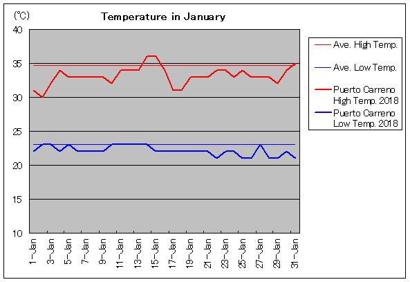 | 1月11日 | 34.7 / 23.0 | 34.0 / 23.0 | 0 | 1月26日 | 34.7 / 23.0 | 33.0 / 21.0 | 0 |