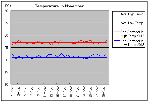 | 11月1日 | 27.0 / 20.9 | 26.2 / 22.2 | 0 | 11月16日 | 27.0 / 20.9 | 28.1 / 22.5 | 0 |