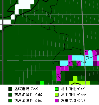 | 平均最高気温(℃) | 4.8 | 6.5 | 11.0 | 15.0 | 19.5 | 22.7 | 25.3 | 24.8 | 20.4 | 15.1 | 9.0 | 5.5 |
