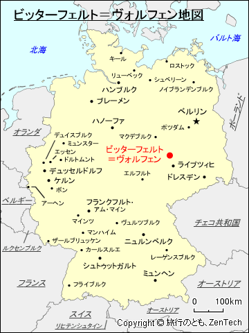 ドイツにおけるビッターフェルト=ヴォルフェンの位置が判る地図