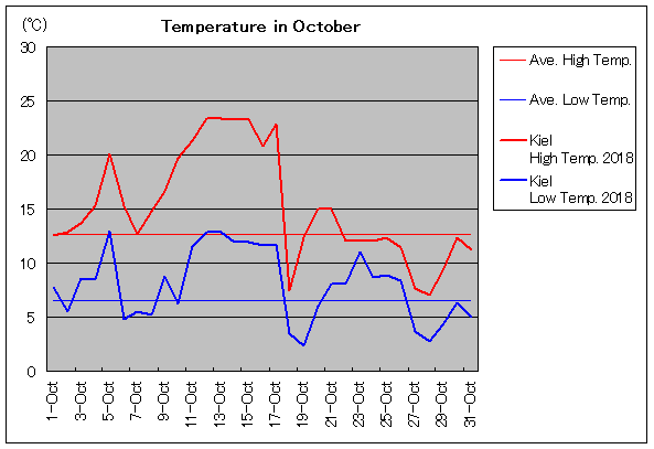 | 10月3日 | 12.6 / 6.5 | 13.7 / 8.5 | 1 | 10月18日 | 12.6 / 6.5 | 7.4 / 3.4 | 0 |