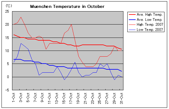 | 月日 | 平均気温 最高 / 最低 | 2007年10月 最高 / 最低 | 月日 | 平均気温 最高 / 最低 | 2007年10月 最高 / 最低 |