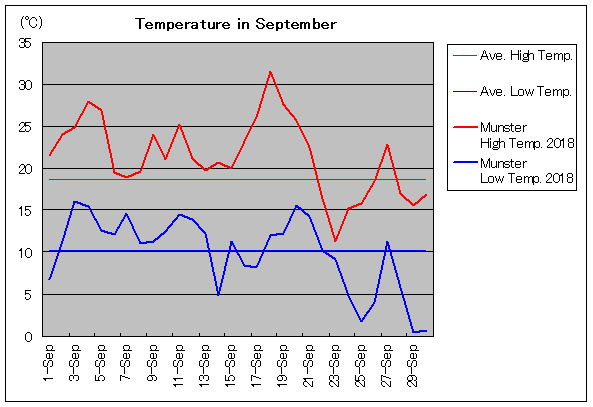 | 9月3日 | 18.7 / 10.1 | 24.8 / 16.1 | 2 | 9月18日 | 18.7 / 10.1 | 31.5 / 12.0 | 0 |