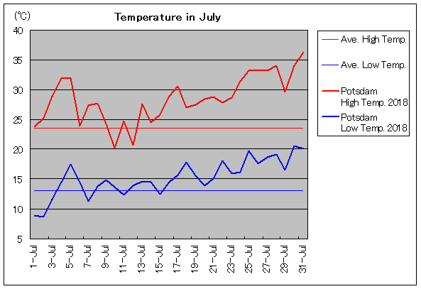 | 7月11日 | 23.6 / 13.0 | 24.7 / 12.3 | 7 | 7月26日 | 23.6 / 13.0 | 33.4 / 17.6 | 0 |