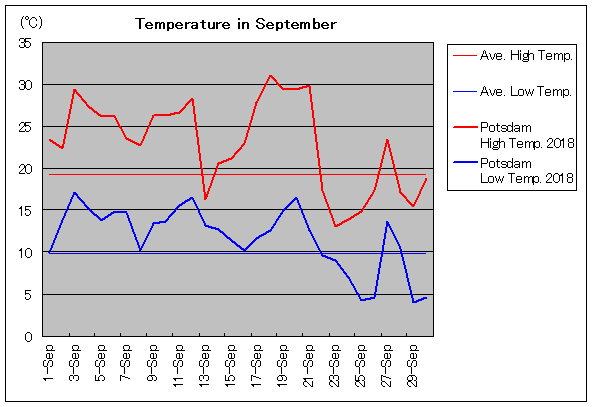 | 9月2日 | 19.2 / 9.8 | 22.4 / 13.8 | 0 | 9月17日 | 19.2 / 9.8 | 27.9 / 11.7 | 0 |