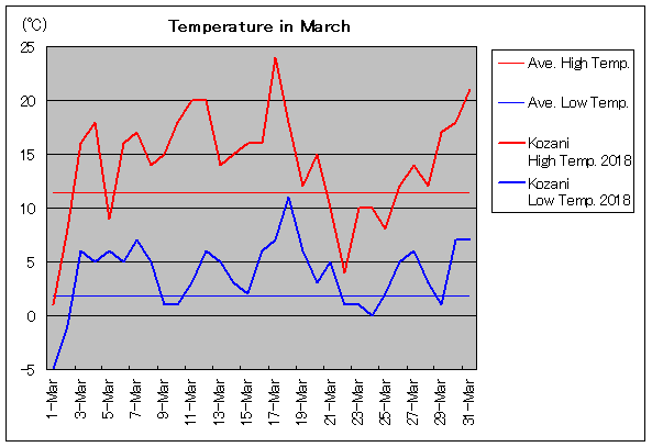 | 3月2日 | 11.4 / 1.8 | 8.0 / -1.0 | 0 | 3月17日 | 11.4 / 1.8 | 24.0 / 7.0 | 0 |