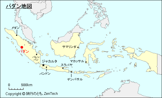 インドネシア西部、スマトラ島の中部西岸にある西スマトラ州沿岸(メダンから南南東へ 540キロメートル)に位置するパダンの気候は、ケッペンの気候分類に基づく熱帯雨林気候(ケッペン気候区分:Af)を特徴としています。この熱帯雨林の気候は、赤道直下にあり、貿易風やサイクロンによる雨よりも、熱帯収束帯の影響を受け易いです。パダンはインドネシアで最も雨の多い都市の 1つで、年間を通じて頻繁に雨が降ります。この都市の年間降水量は平均約 4,300ミリメートルです。パダンで最も乾燥した月は 2月で、平均降水量は 250ミリメートルです。パダンの気温は年間を通じて比較的一定で、年間平均気温は 27.7℃です。パダンには 21の川があり、最も長いバタン・カンディス川は長さ 20キロメートルです。1980年には、主にバタンアラウに流れ込む市の排水路が許容を超え充分に排水することができなかったため、市の3分の2が浸水し洪水被害がでました。