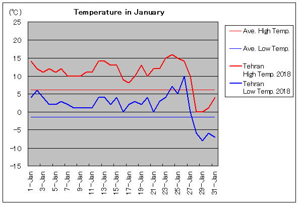 | 1月13日 | 6.1 / -1.5 | 14.0 / 4.0 | 0 | 1月28日 | 6.1 / -1.5 | 0.0 / -6.0 | 18 |