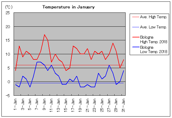 | 月日 | 平均気温 最高 / 最低 | 2018年1月 最高 / 最低 | 降水量 | 月日 | 平均気温 最高 / 最低 | 2018年1月 最高 / 最低 | 降水量 |