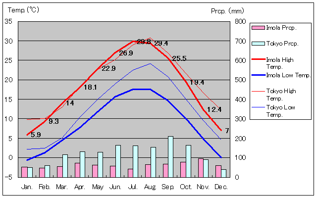 エミリア・ロマーニャ州イーモラ月別気温(Temperature & Precipitation of Imola, Emilia-Romagna, Italy)