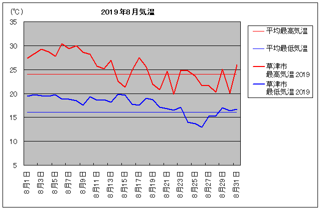 | 8月9日 | 24.0 / 16.1 | 28.7 / 17.6 | 3 | 8月24日 | 24.0 / 16.1 | 24.8 / 14.0 | 0 |