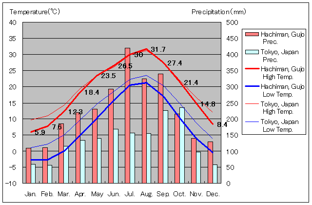 Šò•ŒŒ§ŒSãŽs ”ª”¦ŒŽ•Ê‹C‰·iTemperature & Precipitation of Hachiman, Gujo City, Gifu Prefecture, Japanj