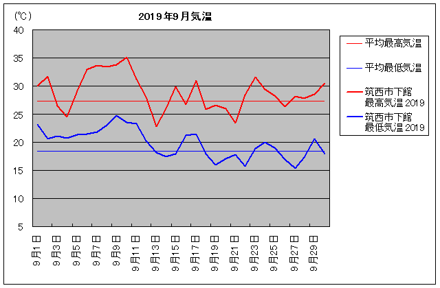 | 9月10日 | 27.3 / 18.4 | 35.1 / 23.5 | 12 | 9月25日 | 27.3 / 18.4 | 28.3 / 19.0 | 0 |