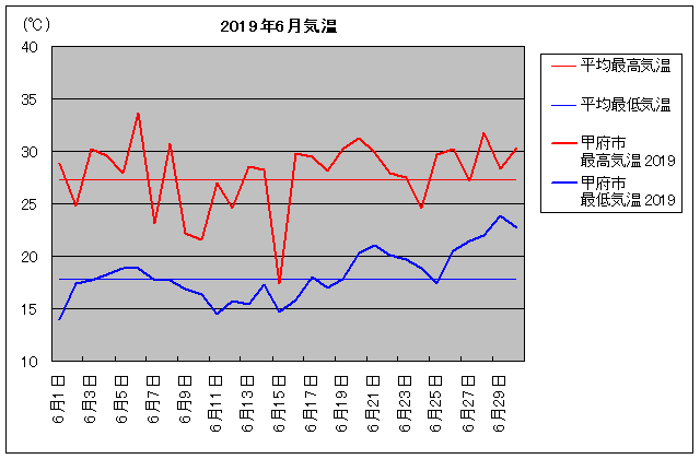 | 6月4日 | 27.3 / 17.9 | 29.6 / 18.3 | 0 | 6月19日 | 27.3 / 17.9 | 30.2 / 17.9 | 0 |