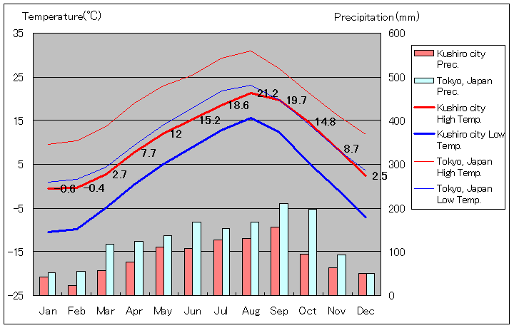 北海道釧路総合振興局 釧路市月別気温(Temperature & Precipitation of Kushiro City, Kushiro Subprefecture, Hokkaido Prefecture, Japan):標高 4.5メートル